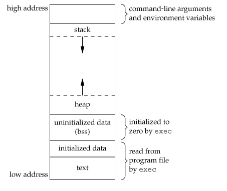 进程的虚拟内存大小取决与你的系统架构。在这个例子中,我使用的64位的机器,所以理论上每个进程的虚拟内存大小是2^64^字节.理论上,虚拟内存的最高位地址可能是0xffffffffffffffff,最低地址是0x0