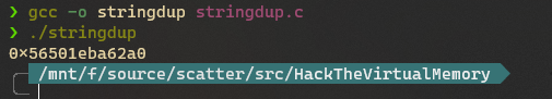 堆在虚拟内存中起始地址0x564a10b4e000,字符串副本位于堆的0x2a0处,因此字符串地址为0x564a10b4e2a0